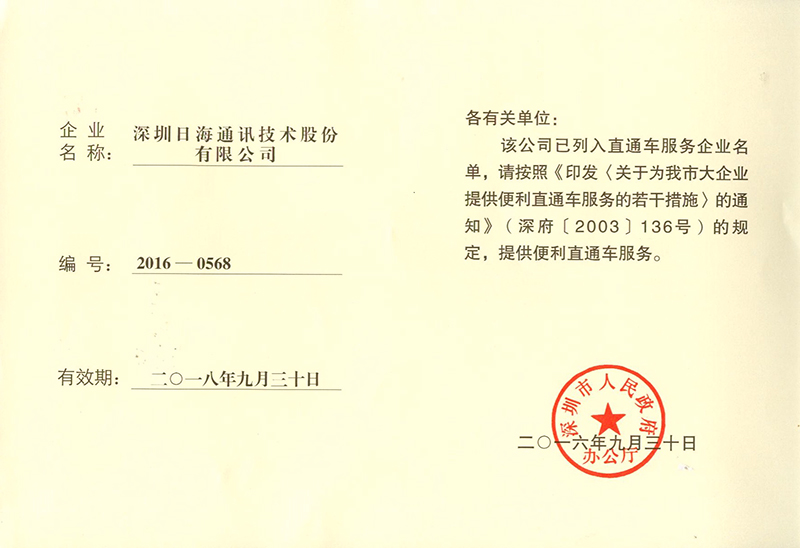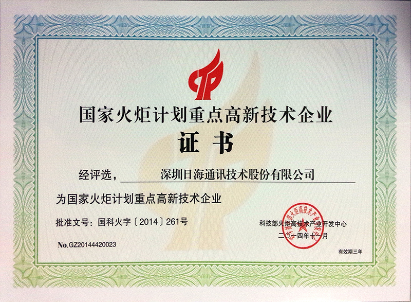 • 12月,被深圳市政府认定为”深圳市高新技术企业”