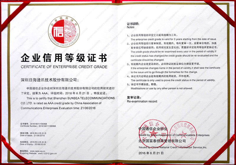 • 10月,被深圳市中小企业信用担保中心授予“诚信中小企业”